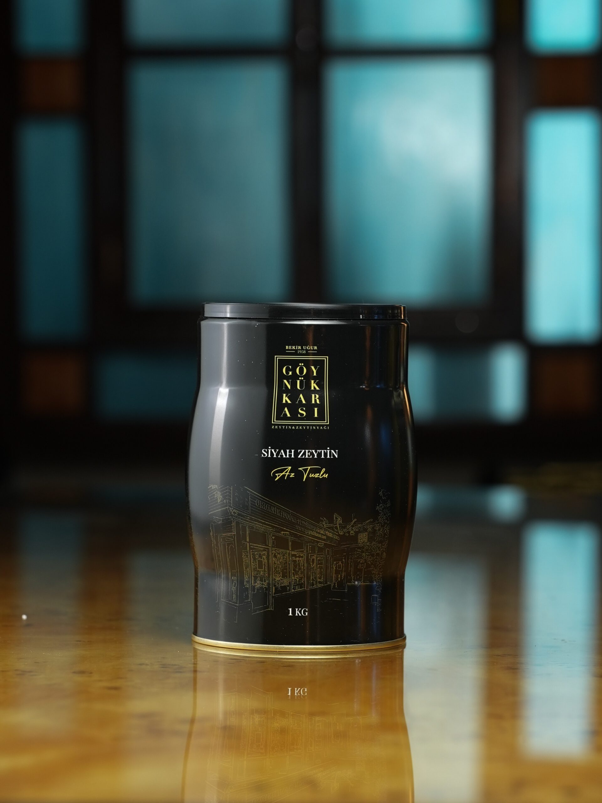 Özel İri 201-230 Az Tuzlu Siyah Zeytin 1 kg-Teneke